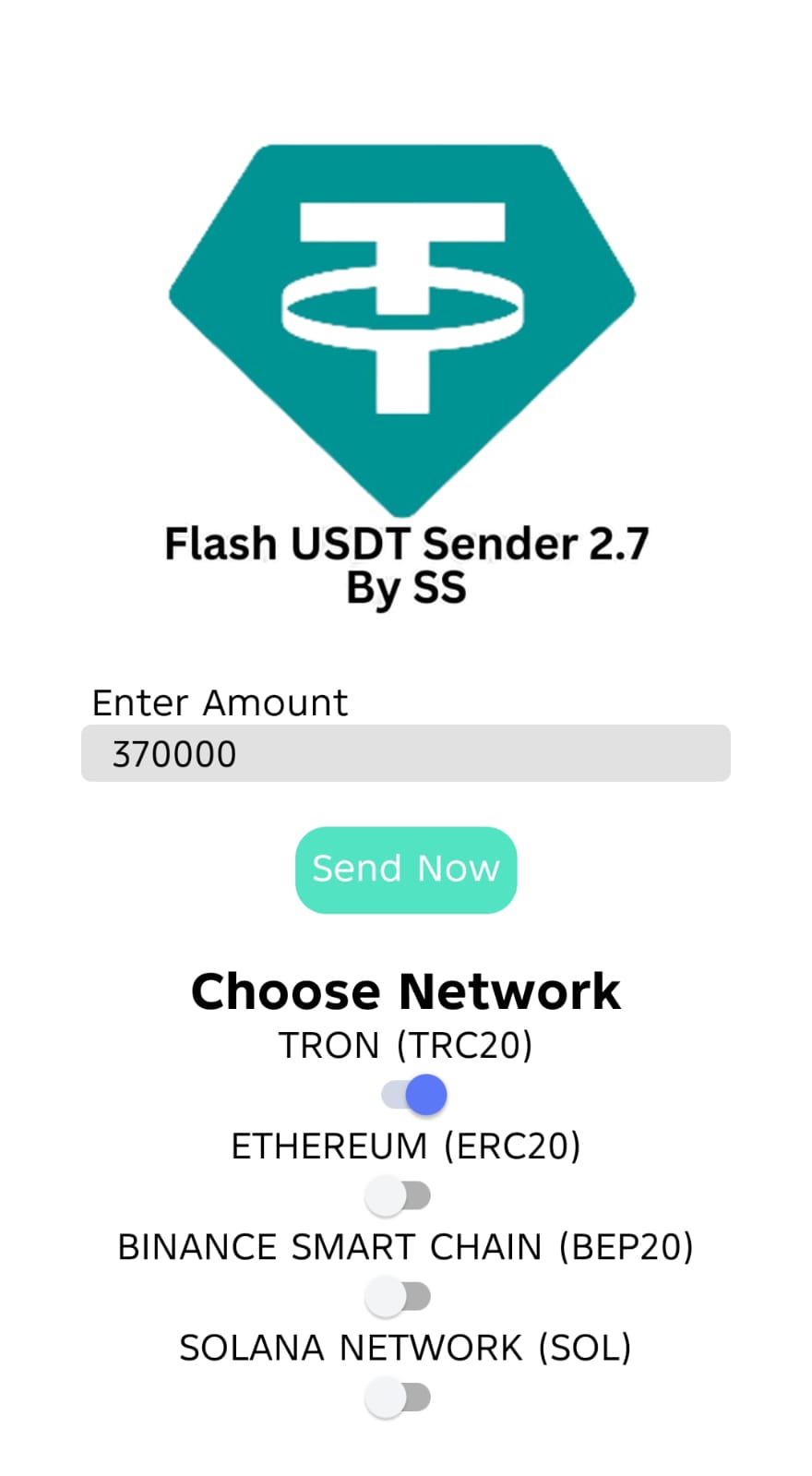Flash USDT Sender is a powerful and advanced tool designed to provide seamless Flash transactions across multiple blockchain networks. It supports four leading blockchains — Solana, Tron, Ethereum, and Binance Smart Chain (BSC) — ensuring maximum compatibility, speed, and flexibility for users.